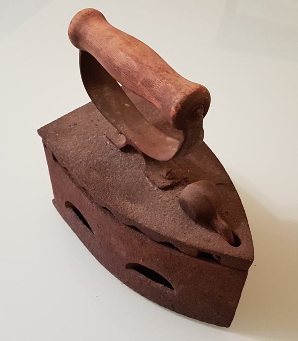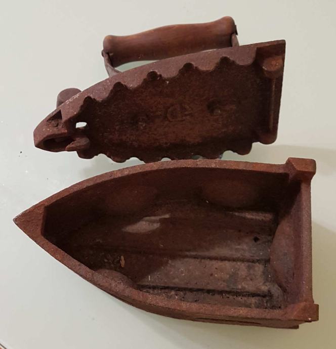 Pegla je u dobrom stanju s obzirom na dob. Ne vidim nikakva oštećenja ni na željezu ni na drvenoj ručki.