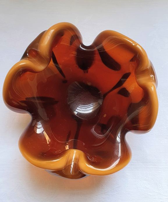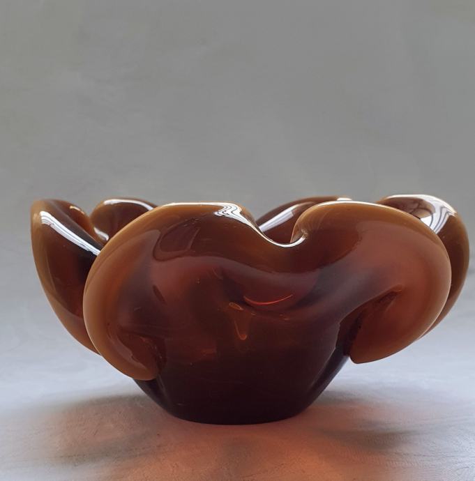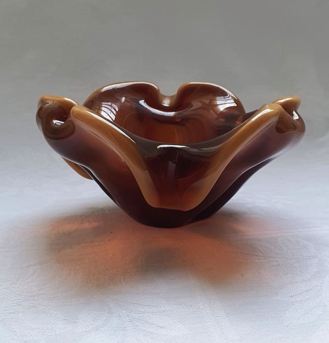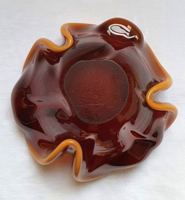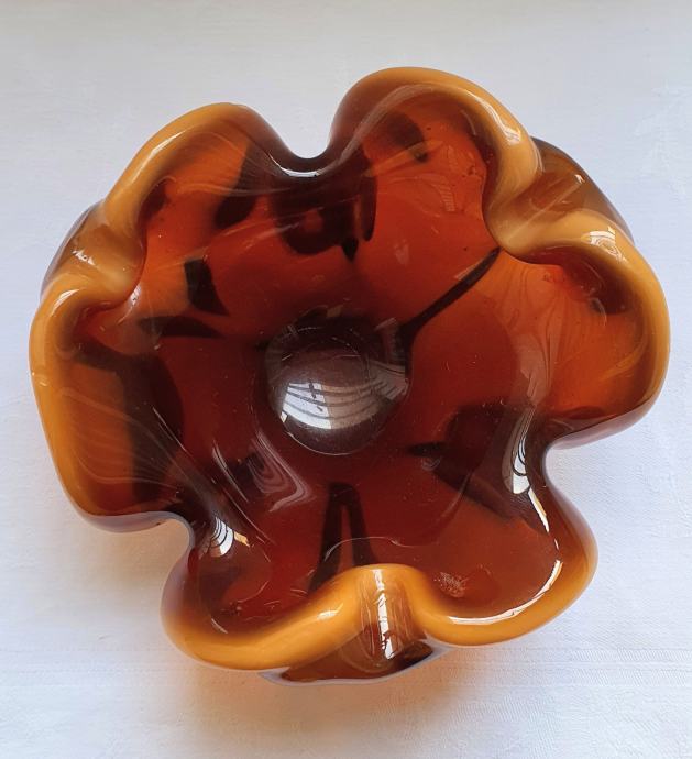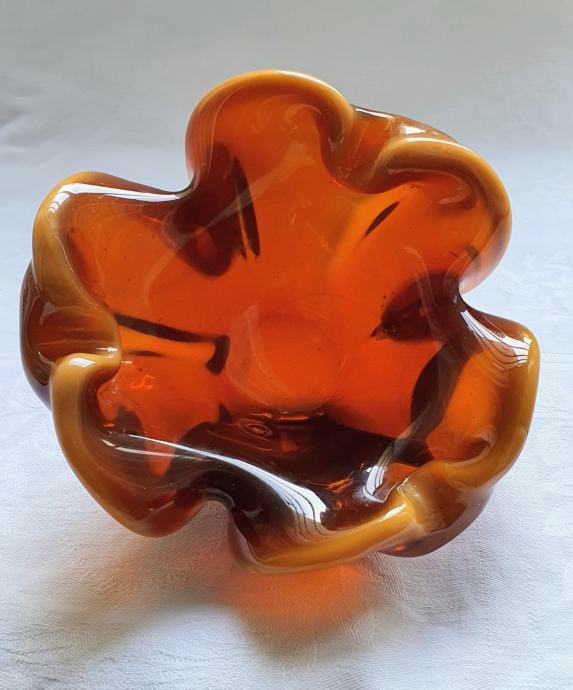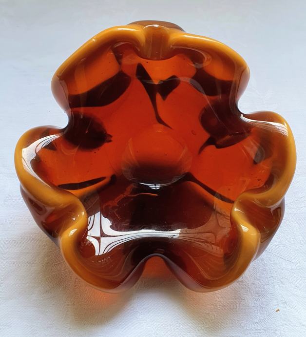 Presna vintage pepeljara puhano staklo boje konjaka izuzezno dekorativna bez ostećenja promjer 14cm visina 7cm tezina 760grama