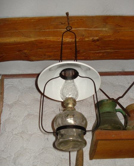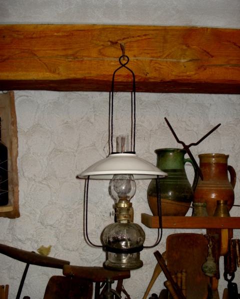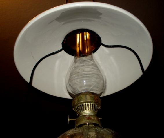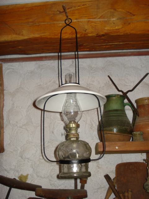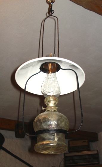 Stara ali obnovljena petrolejska ,luster lampa sa keramičkim sjenilom