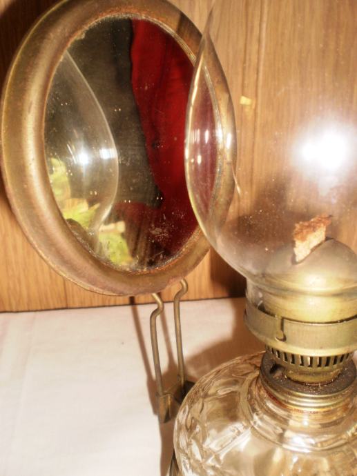 Prodajem staru petrolejsku lampu, odlično očuvana, ispravna, sa staklenim cilindrom i zrcalom, slike u galeriji. Visina 35 cm, može se objesiti na zid.