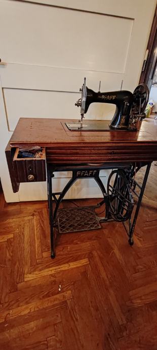 Prodajem stari nožni šivaći stroj Pfaff 31 s originalnim željeznim stalkom i drvenim stolom s ladicom. Stroj radi – mehanizam se normalno pokreće, pedalom se okreće kotač, igla ide gore-dolje.