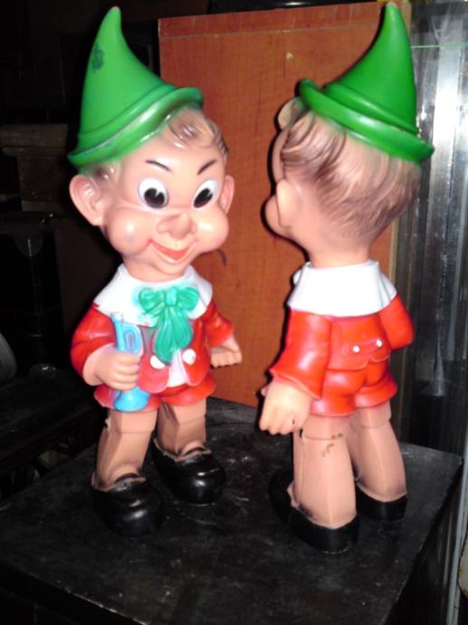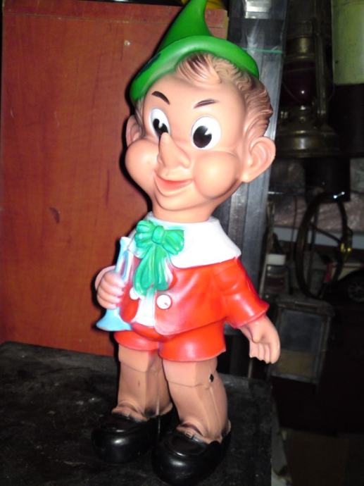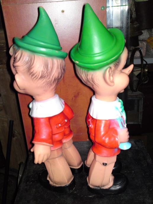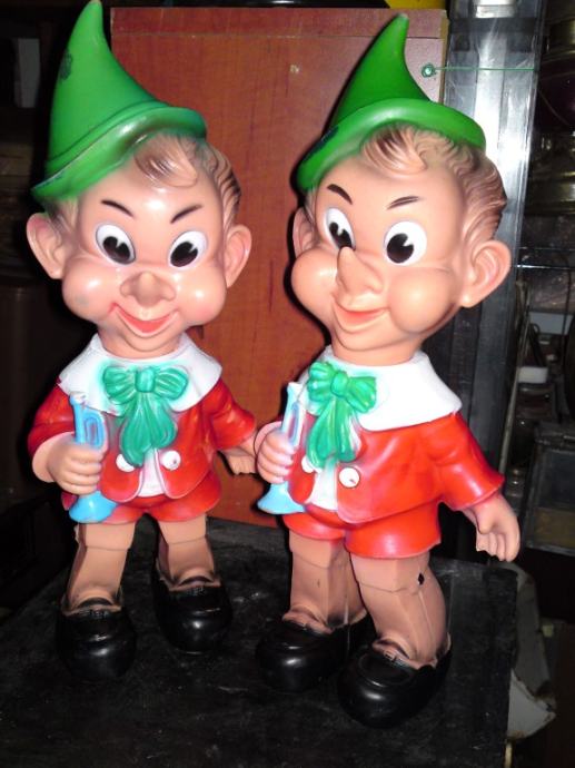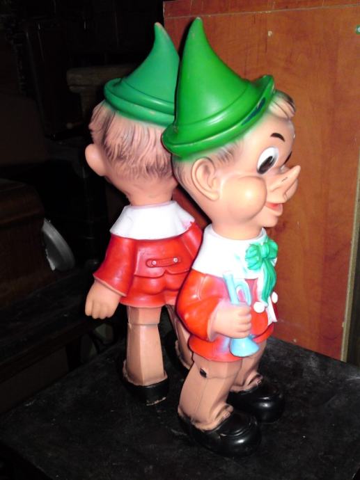 2 gumene igračke iz W. Disney kolekcije; PINOKIO; proizvođać: Biserka , Zagreb, 1962.g., u odličnom stanju. Dimenzije: dužina. 11,0 cm, širina. 6,0 cm; visina. 24,0 cm. Opis: igračka od lijevane gume, obojena u više tonova.