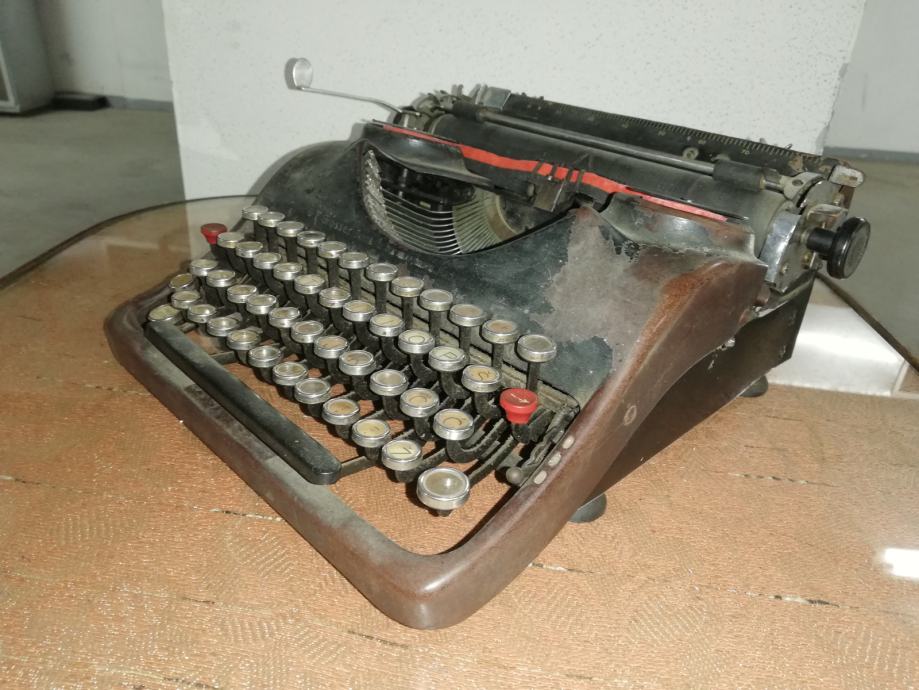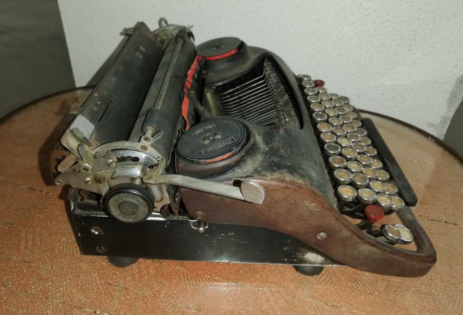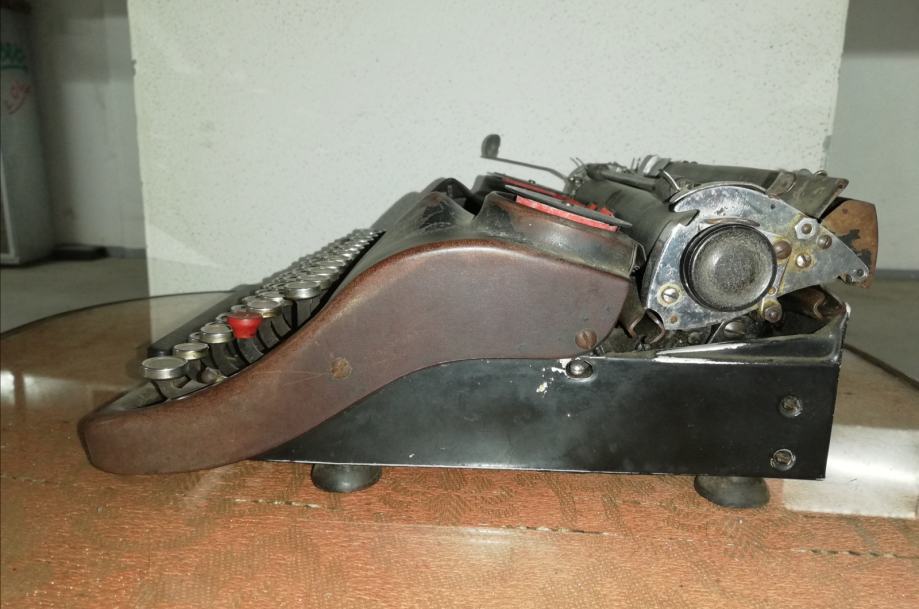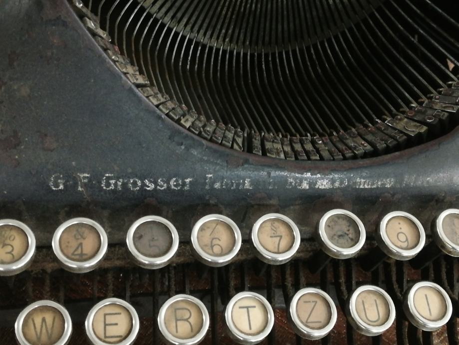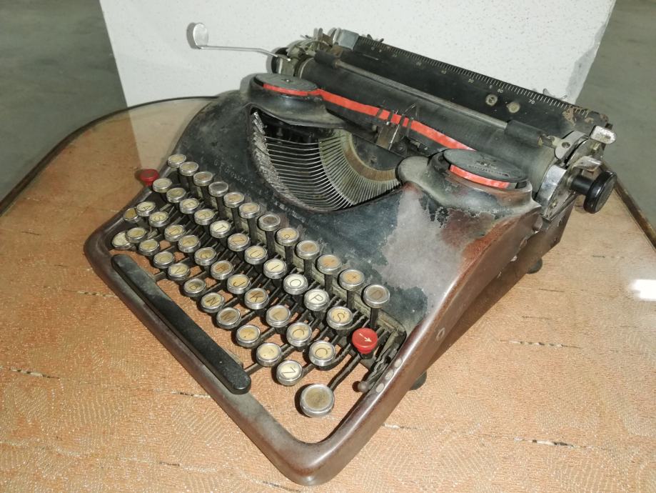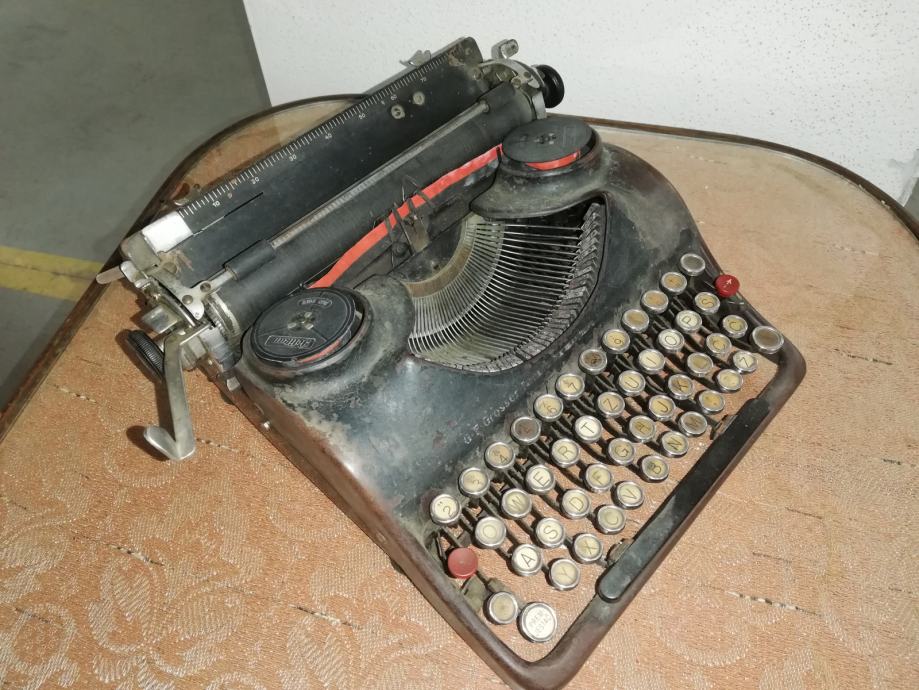 Mehanički prijenosni pisaći stroj Groma Model N iz 1943 g. . Na prednjoj strani je natpis "GF Grosser - Fabrik für Büromaschinen, Markersdorf/Chemnitztal, " Model N" i logo tvrtke . Materijal: Metal & Plastika & Guma; drvo i koža. Dinenzije: Duljina: 290 mm Širina: 330mm / Visina: 145mm /Težina: 5,6 kg.
