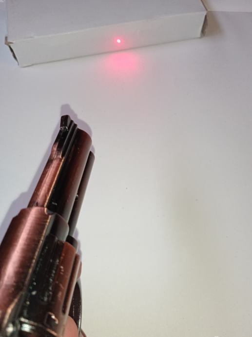 Na okidaću se pali crveni laser a na kokotu (udarnoj igli) se pali plamen