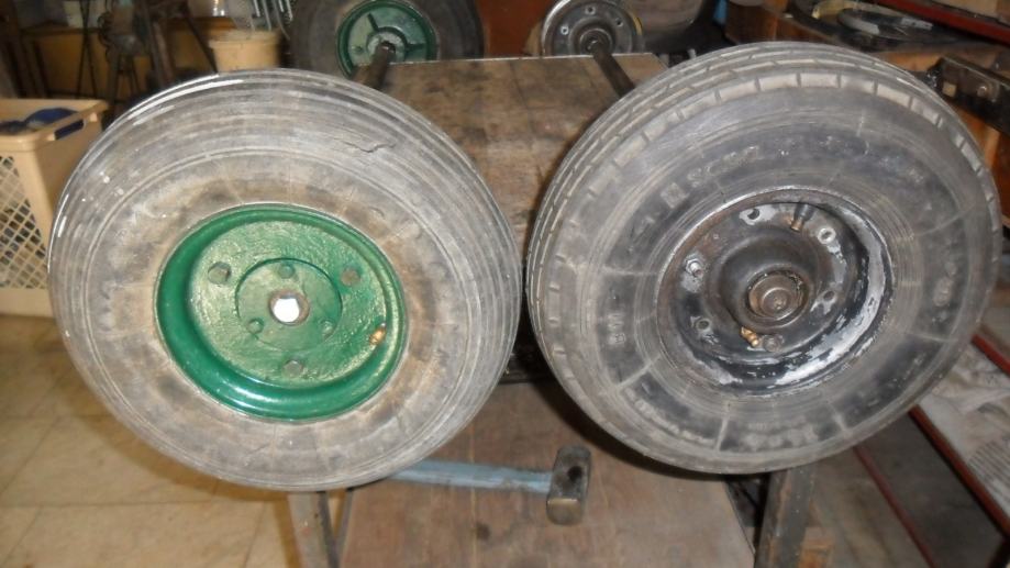 DVIJE OSOVINE SA KOTAČIMA (GLAVČINAMA I FELGAMA 4 kom) - (3 GUME) ZA NAPRAVITI MALI, DJEĆIJI GUMENJAK - "PLATON"