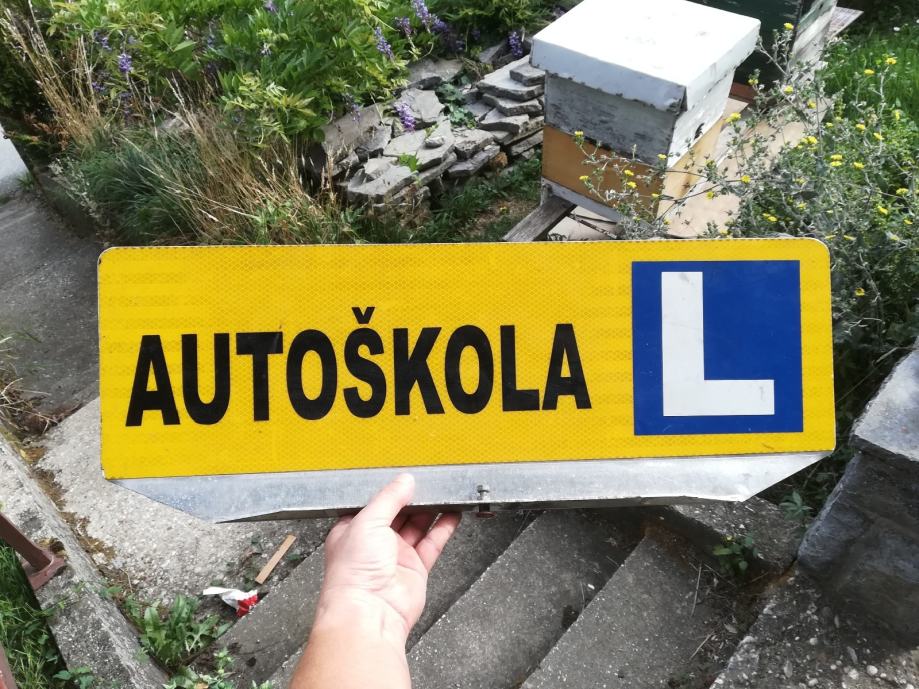 Reflektirajuća ploča, tablica, auto škola. Natpis je sa obje strane, pločica je od debelog aluminija. Cijena je fiksna. Na sms nemogu odgovoriti, najbolje bi bilo da me nazovete 099 687 5657 ili pošaljete poruku preko Njuškala.