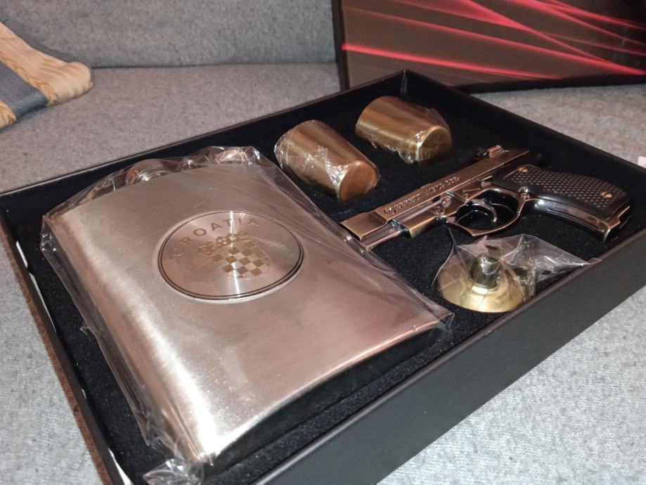 Poklon set Croatia (model broj 2) pljoska, upaljač pištolj Beretta
