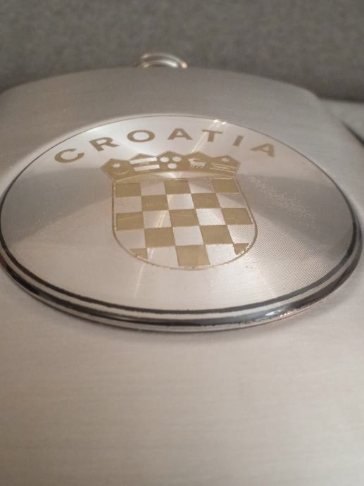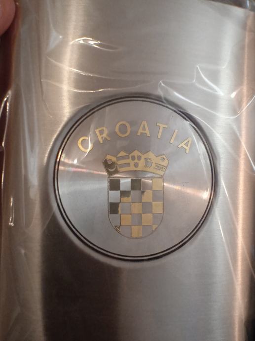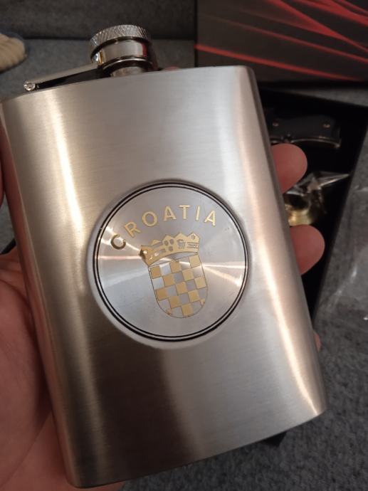 Ploska / Pljoska Croatia od visoko poliranog nehrđajućeg čelika sa Hrvatskim grbom