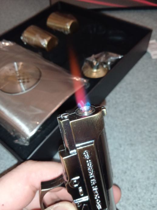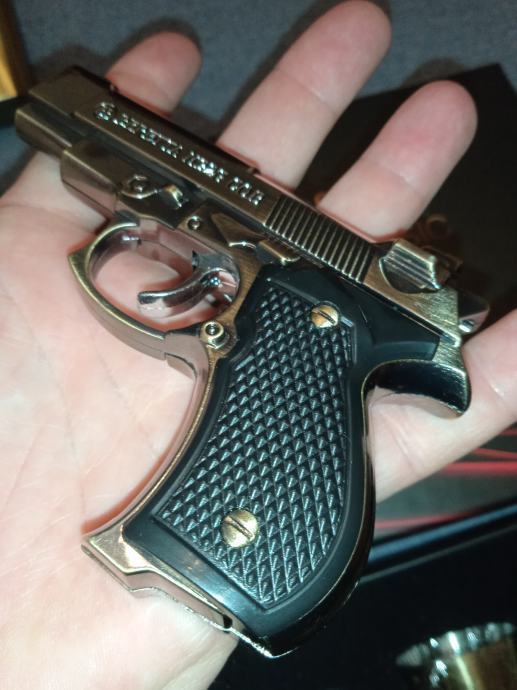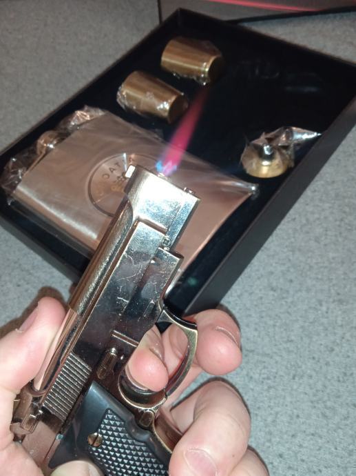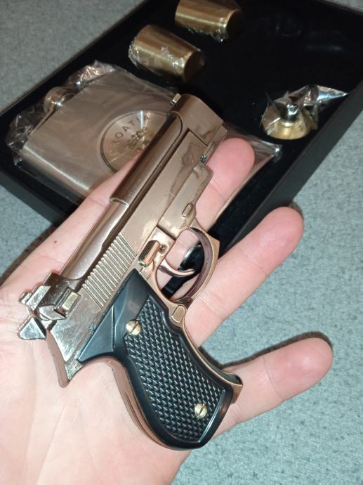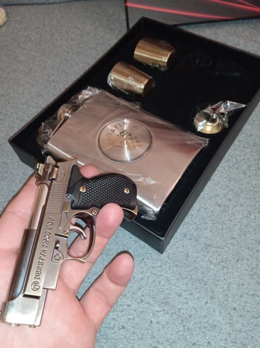 Poklon set pljoska sa dvije čašice,ljevak i upaljačem oblika pištolja Beretta