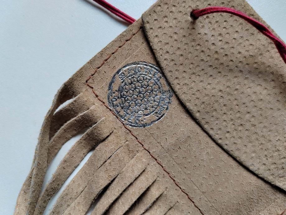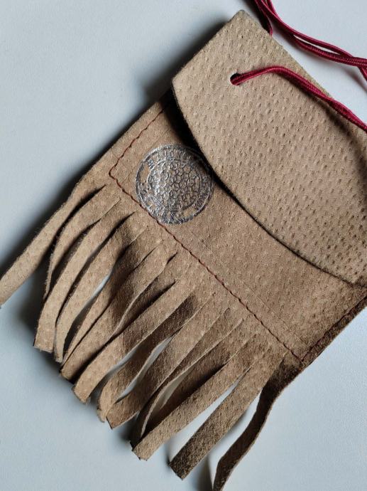 mala kožna torba s resama na uzici s otisnutim logom Slavonske banke
