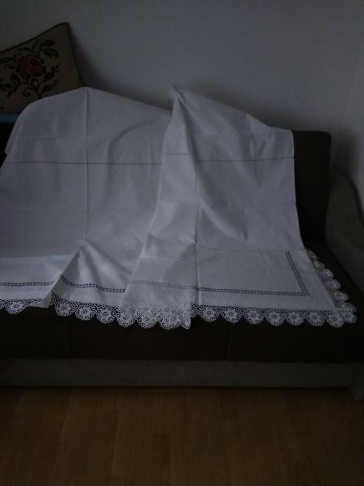 Prodajem plahte za krevet.Izrađene su ručnim radom i heklanom čipkom.Cijena je 130 eura po komadu.