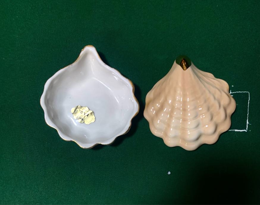 Mala porculanska kutijica u obliku skoljke sa pozlacenim rubovima velicine 10c10 cm, u odlicnom stanju