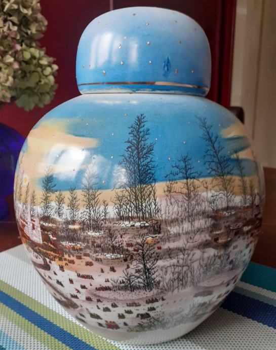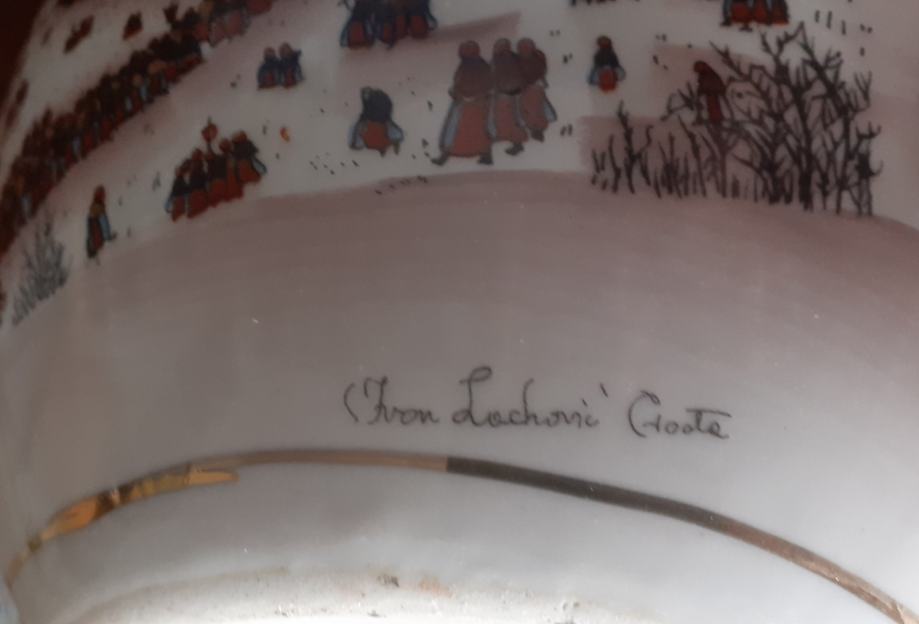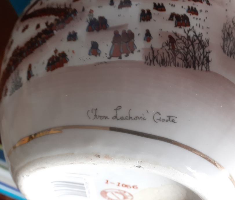 motiv slike je Međugorje, u okviru izložbe: Ivan Lacković Croata – Oslikani kineski porculan, 1996 godine.