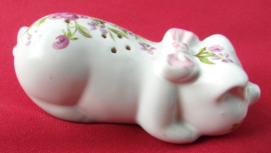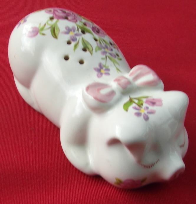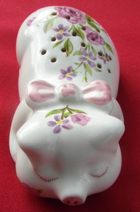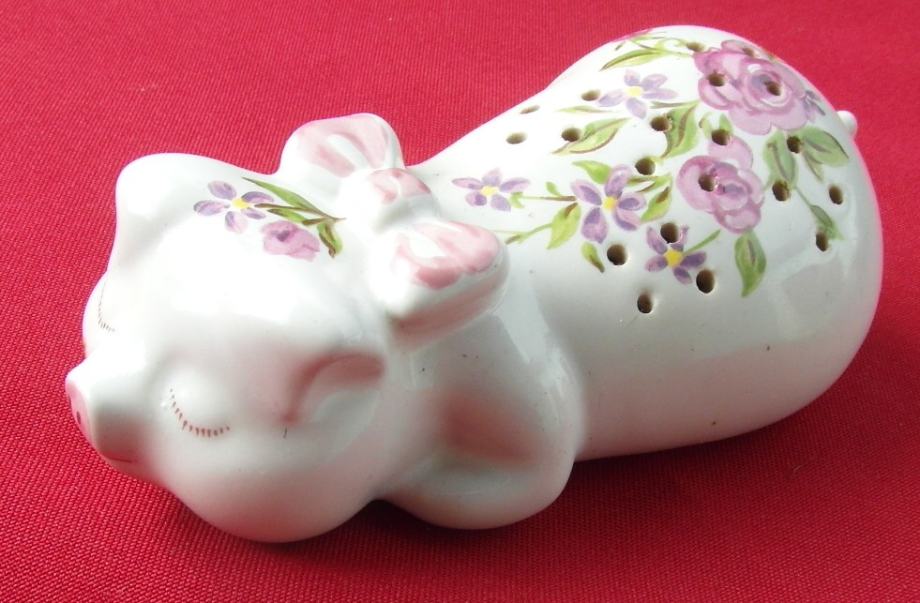 Porculanska svinjica za eterično ulje Caramarte iz 1978 godine, ručno bojana proizvođena za Avon.Lijepo malo uspavano prase koje služi kao pomander - napunite ga popourrijem ili upotrijebite svoje omiljeno eterično ulje u priloženoj piljevini i pustite je da radi zaslađujući zrak oko sebe. Velika je 12,7 cm od vrha do repa.