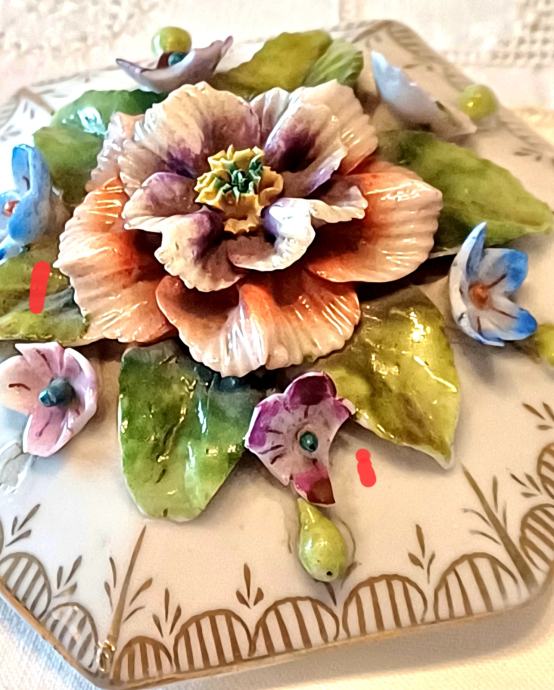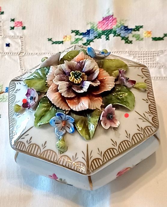 2. Stari Beč, promjer 9 cm; visina 6 cm. Zbog sitnog oštećenja na poklopcu, označena crvenim točkama, cijena je 30 eura.
