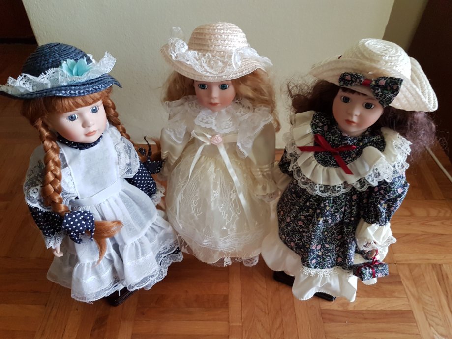 Prodajem 3 porculanske lutke iz Promenade kolekcije. Visina im je 40cm i stare su otprilike 20 godina. U odličnom su stanju (gotovo kao nove) obzirom da su od početka čuvane u kutijama. Svaka lutka ima i svoj stalak. Cijena jedne lutke je 70kn,dok se sve tri zajedno prodaju za 200kn.