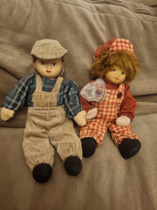 Prodajem stare lutke glava porculan ostalo od tkaninr jako dobro očuvane lutke i odjeća na njima te mrežica za leptire na lutkici visina im je 25cm.Bez oštećenja stajali u regalu.Obje za 15€
