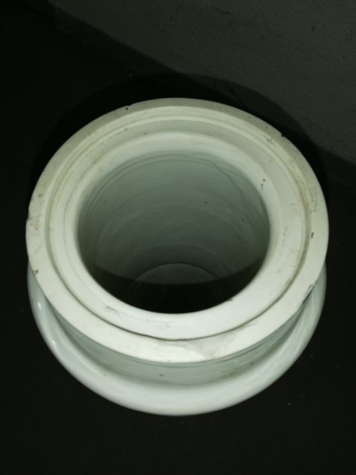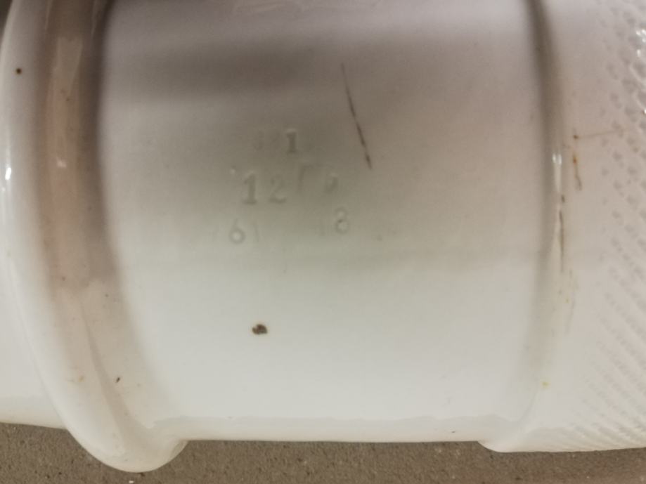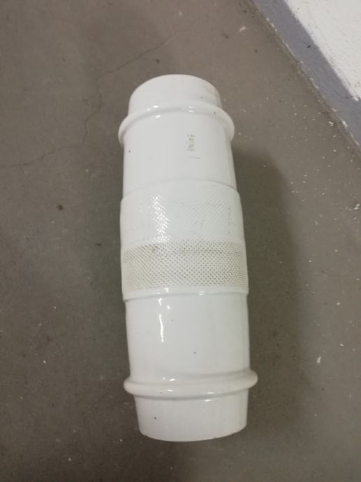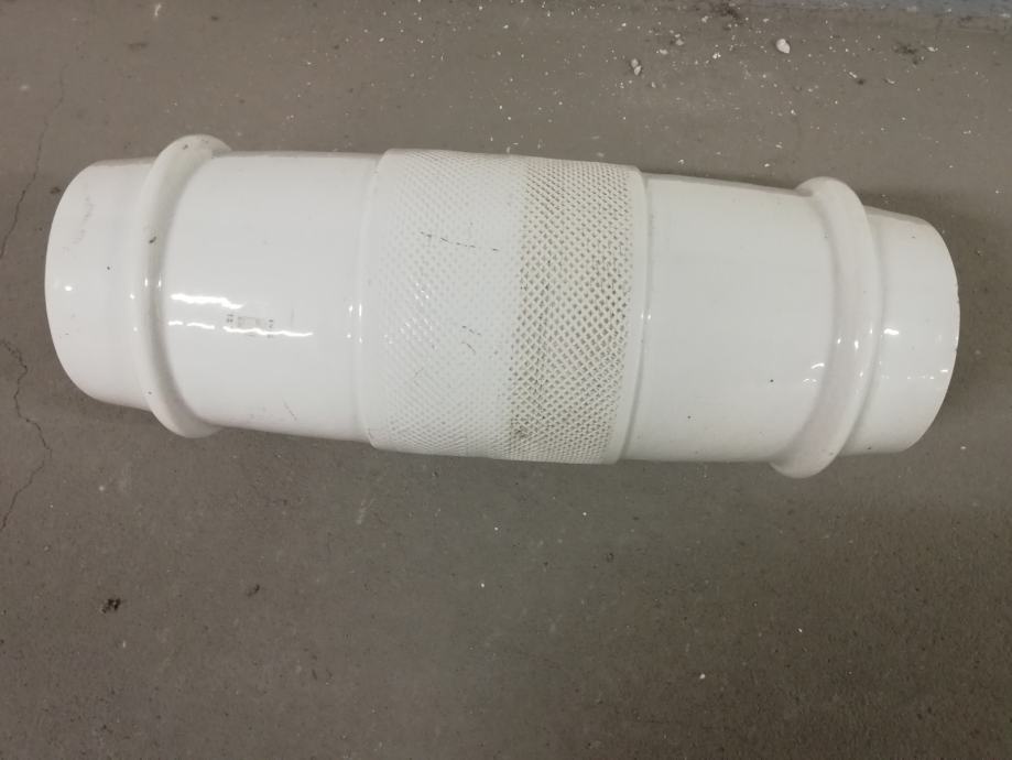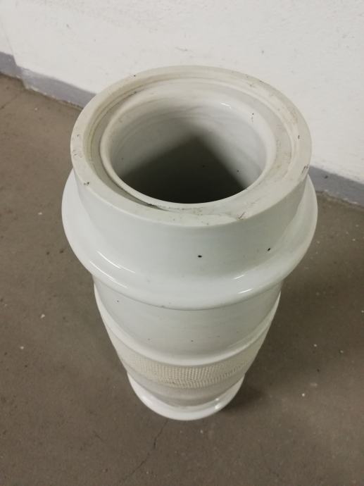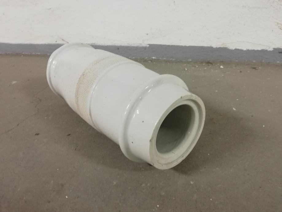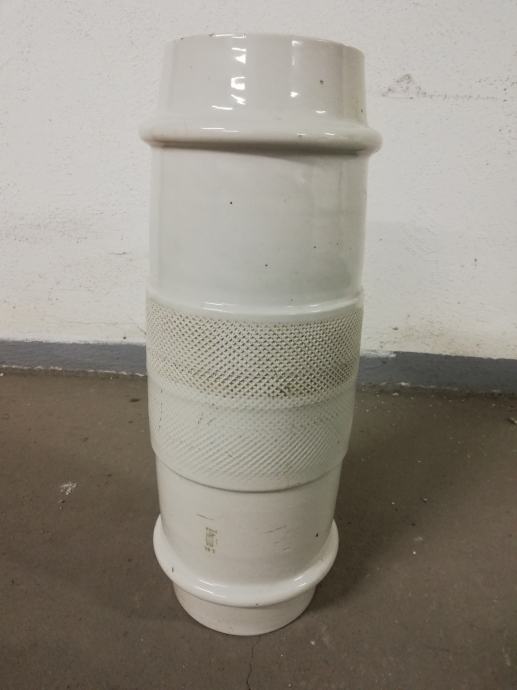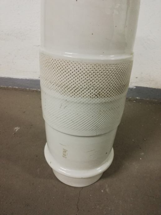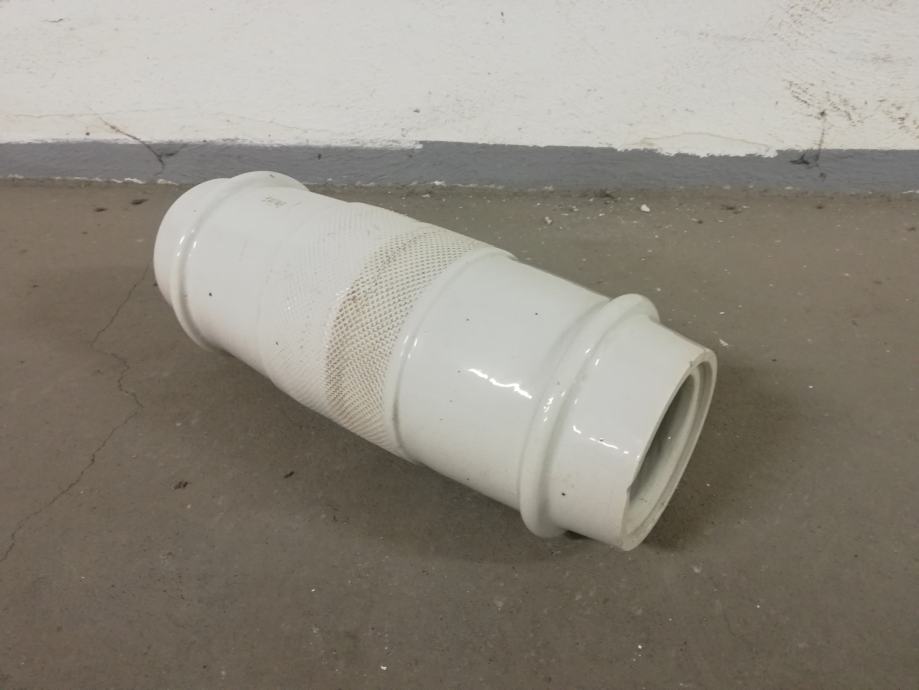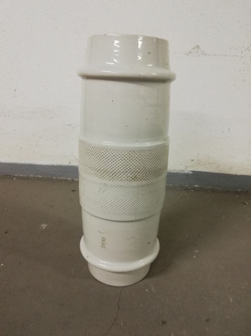 Stari izolator od debelog porculana za visoke napone, izradila tvornica Žolnaj, Pecs, što se vidi iz Žiga, dimenzije: dužina: 45,0 cm, unutrašnji promjer 9,5 cm, vanjski promjer: 17,0 cm. Jako teško.