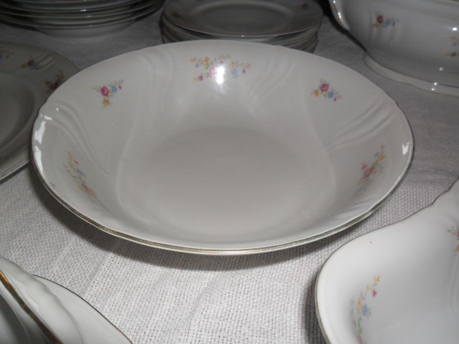 Originalni porculanski servis za ručavanje i kavu za 6 osoba Bavaria sa kraja 30-ih godina. Fali jedan tanjurić za kavu, ostalo je kompletno i u savršenom stanju.
