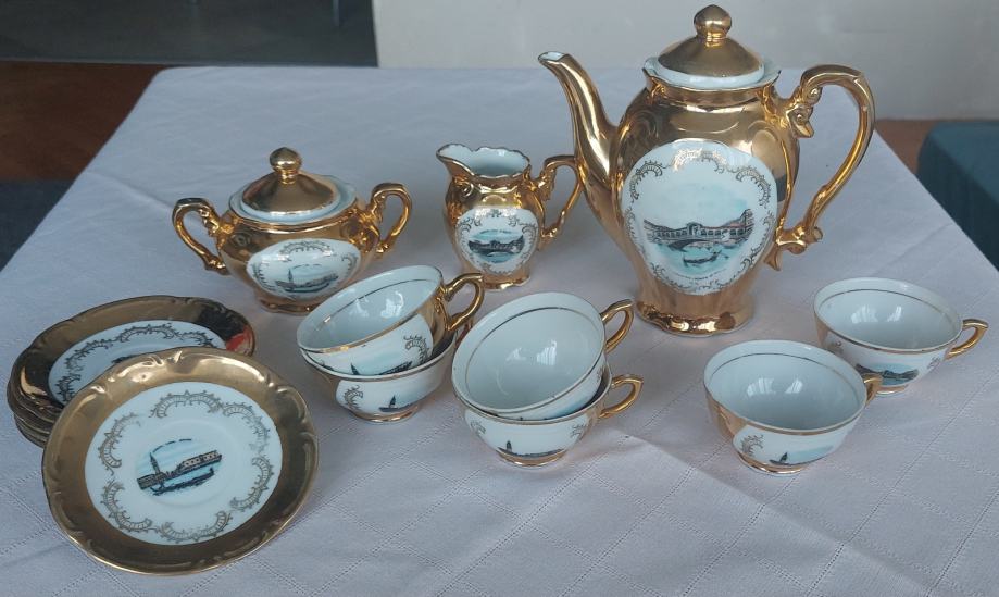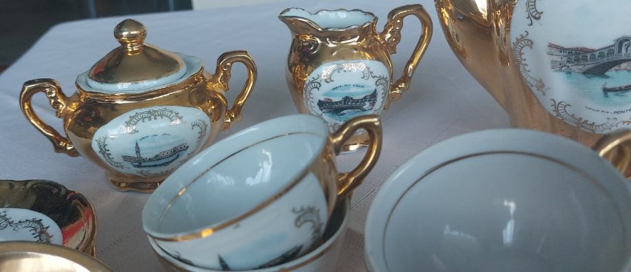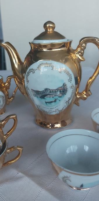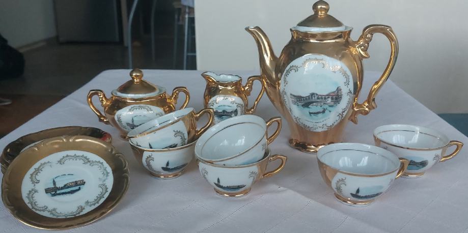Prodajem pozlačeni servis za kavu - motiv Venice. Nedostaje jedan tanjurić,a na jednom se izbrisala slika. Ostalo je sve o.k.