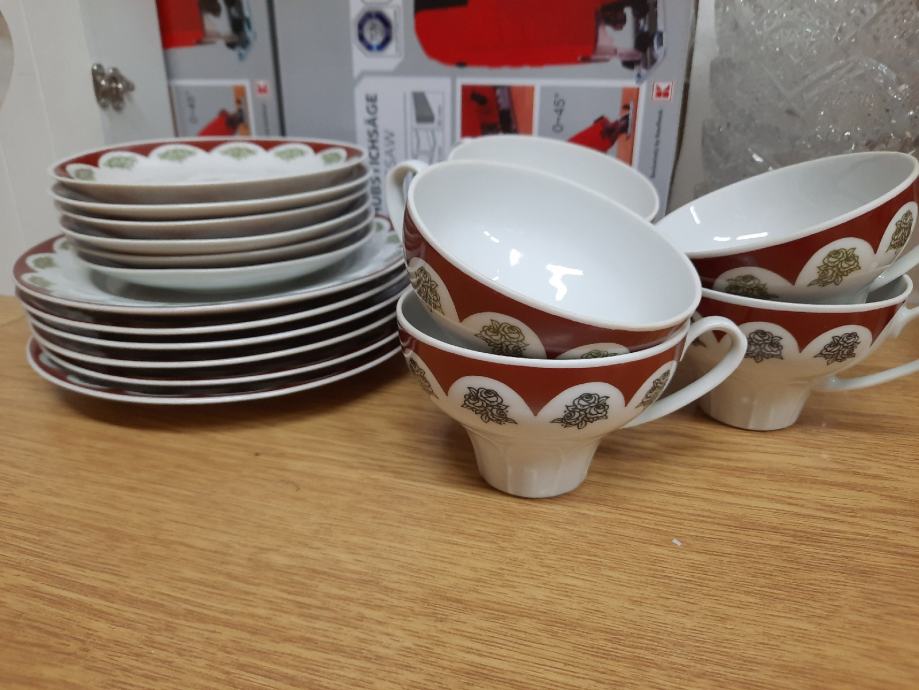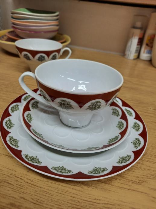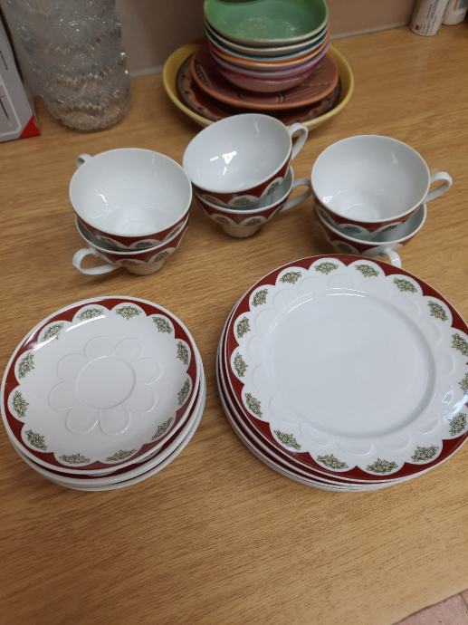 6 desertnih tanjura i 6 šalica sa pripadajućim tanjurićima.