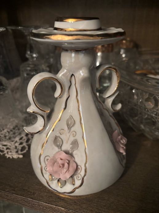 Lijep porculanski svječnjak sa cvjetnim ukrasom i pozlatom.