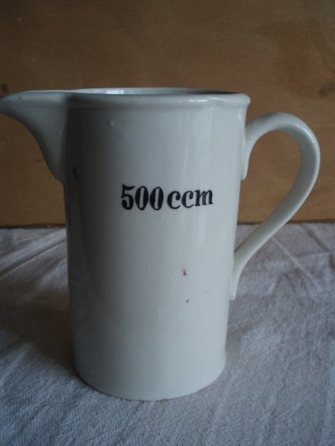 prodajem porculanski vrčić korišten u staoj apoteci zapremnine 500 ccm, visine 14,50 cm, promjera postolja 8,50 cm, a promjera otvora 9 cm.