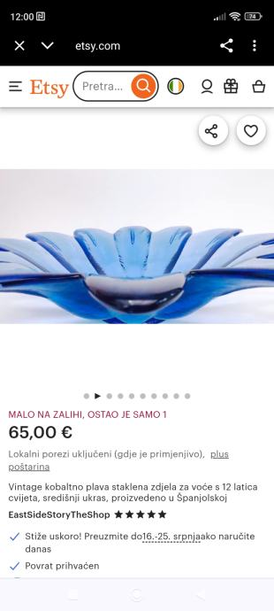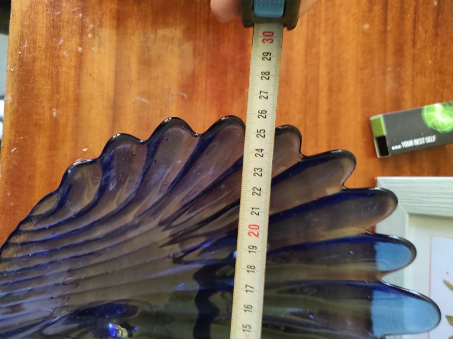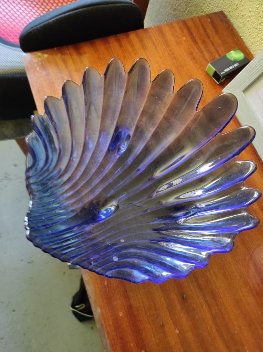 Stara posuda modro plave boje od kobalt stakla,moze biti za voče,povrće,ukras ili nesto sl.Posuda je stara preko 50 godina,bila sa vrednijem posuđem u kutiji moje bake,sa MURANO vazama,kristalnim čašama,beštekom itd.Za sve informacije nazovite na broj telefona dolje upisan ili upit na Njuskalo ili Viber.Šaljem Poštom ili Tiskom ili u dogovoru sa kupcem.Posuda je u obliku cvijeta i široka je 26 cm ,a dugacka 25, skoro pa isto,ako bolje pogledate vidjeti cete mjehuriće zraka unutar zdjele,rucno puhano staklo.VIDI U SLIKAMA!!
