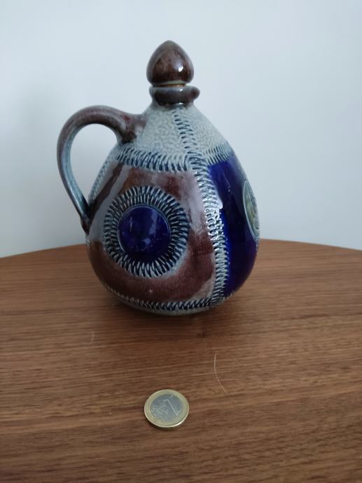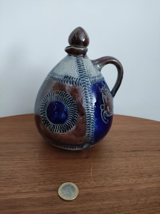 Salt glazed OIL VINEGAR JAR, handmade by Gerharz & Manns Pottery West Germany, mid century, shape 502, ceramic vintage studio. Visina oko 17 cm, promjer dna 13 cm.