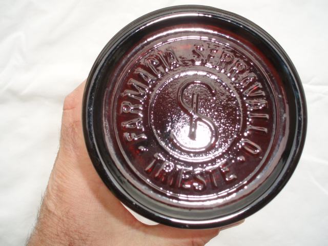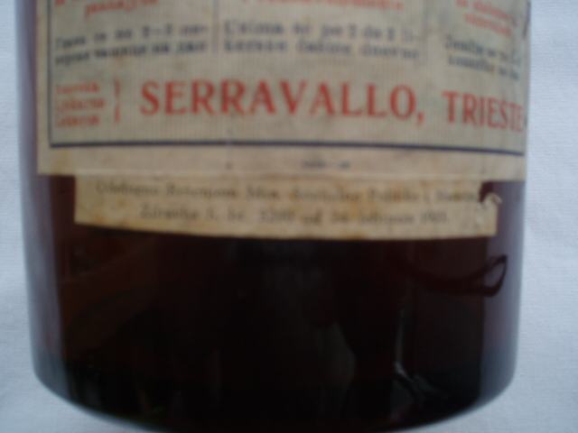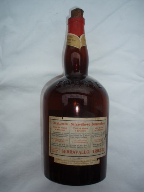 na flaši s donje strane logo firme, na obodu slova Serravallo Trieste