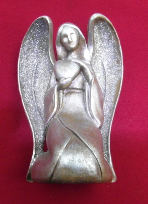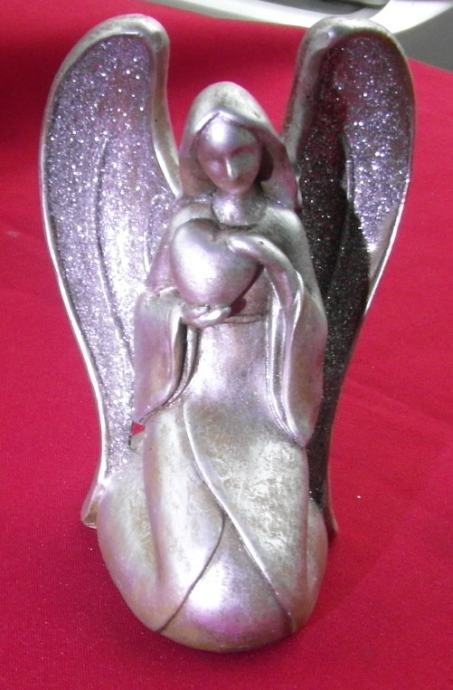 Visina 15 cm, krila su posipana blještavim prahom i lijepo sjaje.