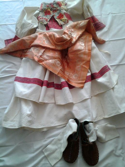 Prodaje se remetska - šestinska narodna nošnja, orginal, stara oko 90 godina. Sadrži oplečak, rubaču,pregaču, ingleški rubec, petokrunac, čarape i opanke.