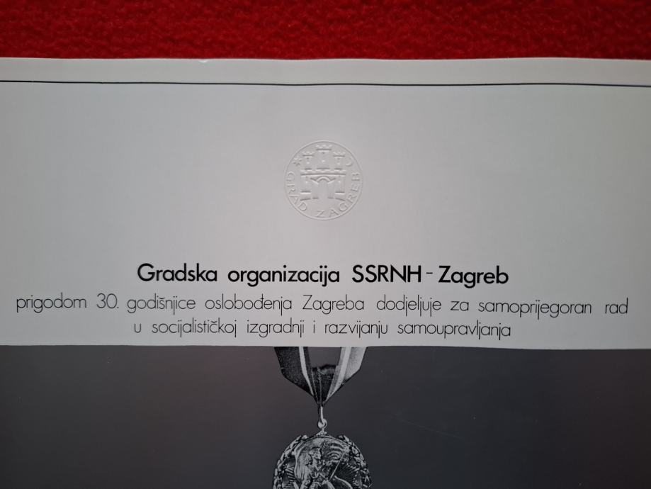 Priznanje tiskano na kvalitetnom foto papiru sa Reljefnim otiskom grba Zagreba.