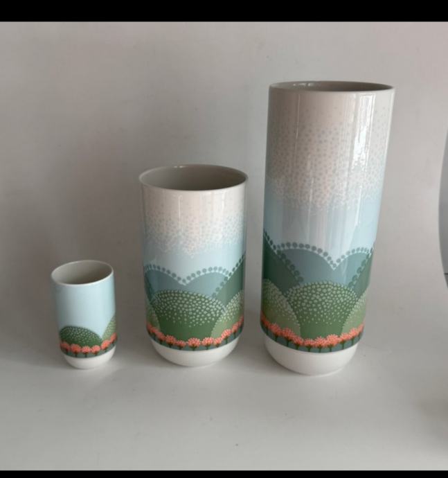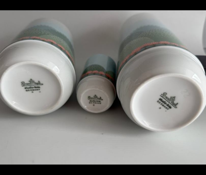 Prodajem set vaza Rosenthal, motiva Ivan Rabuzin. Dimenzija 22.5 cm, 15.5 cm, 8.5 cm.