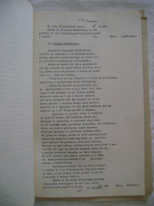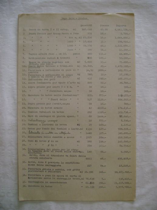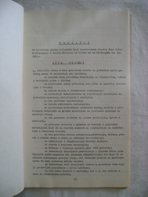 Proračun za gradnju glavne državne ceste Rogatec-Krapina-Podsused-Zagreb-Ivanić Grad-Novska-Okučani-Brod-Zemun; dionica Dugo Selo-Prečec iz 1942. godine, na hrvatskom i talijanskom jeziku - stanje je vidljivo na slikama.