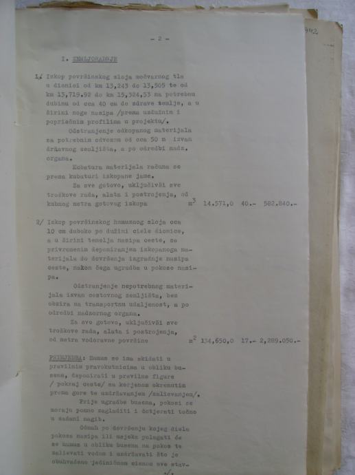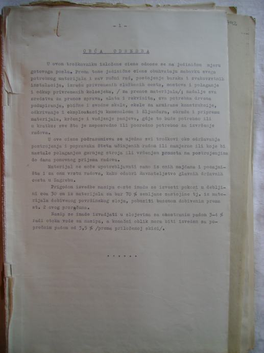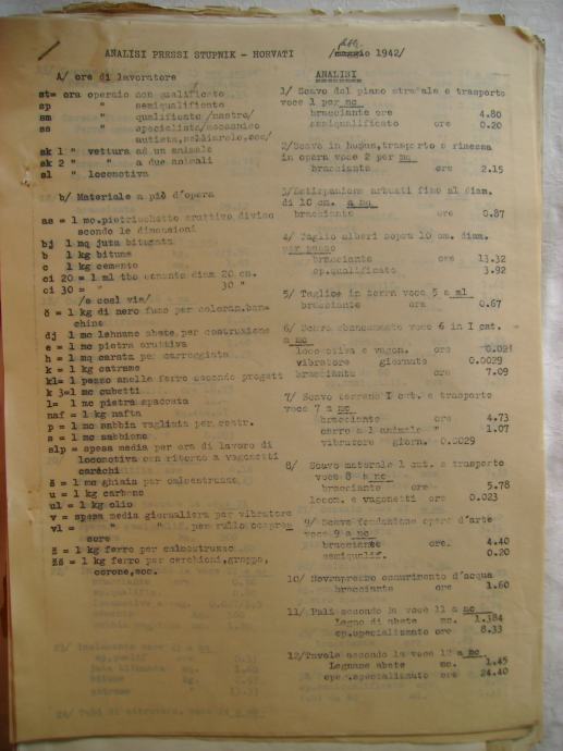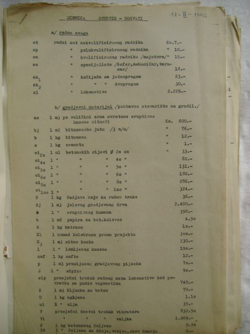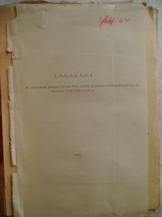 Proračun za izgradnju donjeg stroja državne ceste Zagreb-Karlovac-Hrvatsko Primorje; dionica Stupnik-Horvati iz 1942. godine, na hrvatskom i talijanskom jeziku - stanje je vidljivo na slikama.