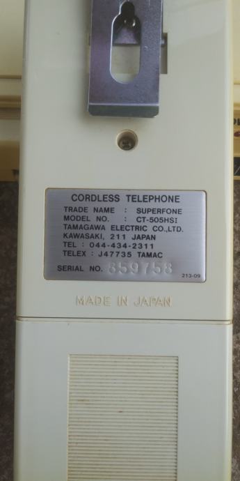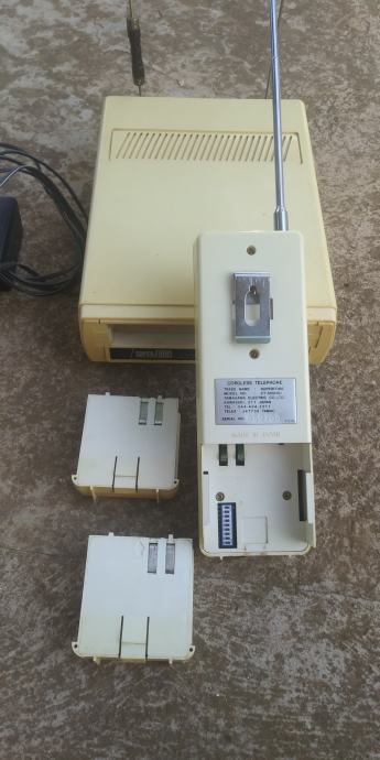 Japanski kućni bežićni telefon sa stanicom i slušalicom. Ima mogućnost punjenja rezervne baterije za slušalicu. U vrlo dobrom stanju i ispravan.