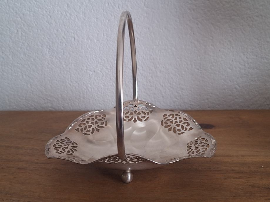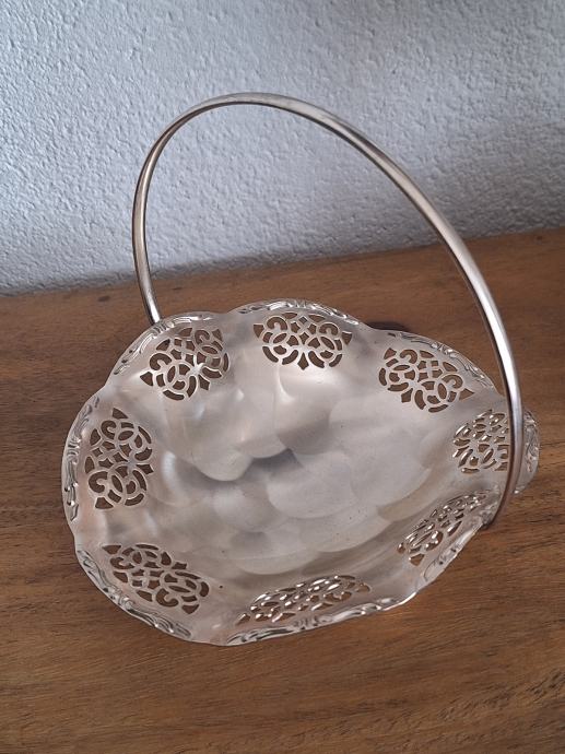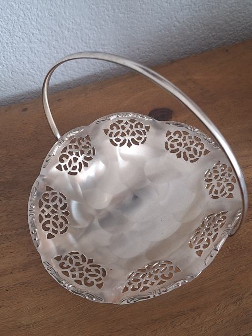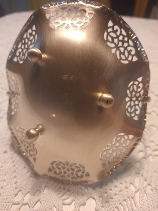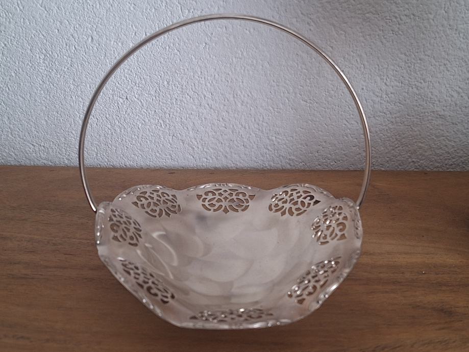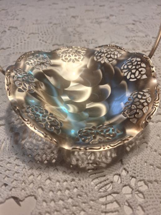 Prodajem ukrasnu posudicu/košaricu marke Quest (iz Njemačke) s ručkom i dekorativnim filigranskim uzorkom. Posudica je posrebrena i u vrlo dobrom stanju bez oštećenja. Idealna za bombone, orašaste plodove, sitne predmete ili kao dekoracija u domu.
