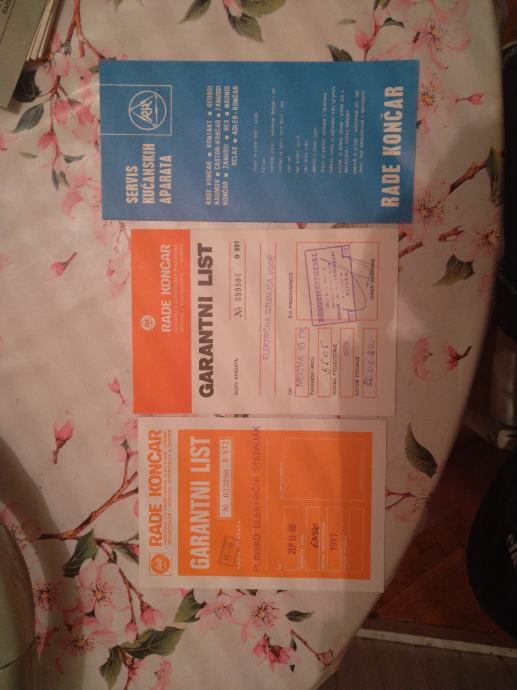 Prodajem dva garancijska lista za električnu grijalicu vode iz 1979g i plinsko električni štednjak iz 1977g kao i neispunjeni blok za garancijske listove i spiskom servisera u bivšoj Jugoslaviji. Plačanje na račun ili gotovina.