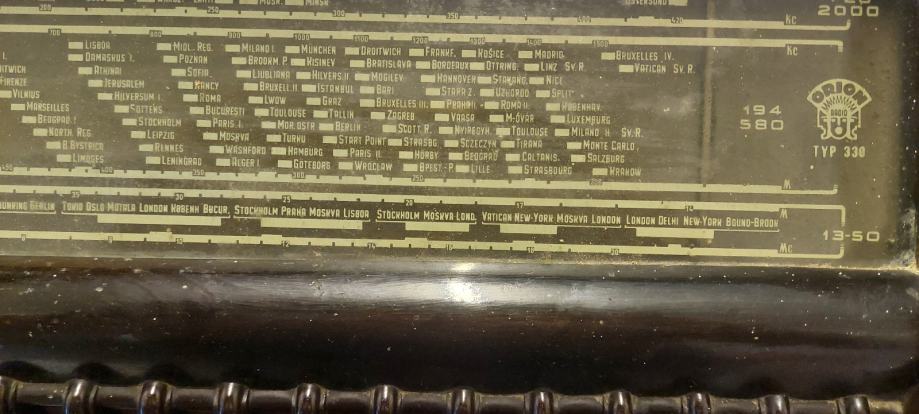 Prodajem radio aparat iz davne 1949.g proizvođača Orion tip 330. Radio je inače u veoma dobrom stanju dakle bez oštećenja i kompletan je. Kad se upali lampe svijetle, skala se pomiče i čuje se tupi zvuk u zvučniku. Za ostale informacije možete me kontaktirati na mob.098 284781.