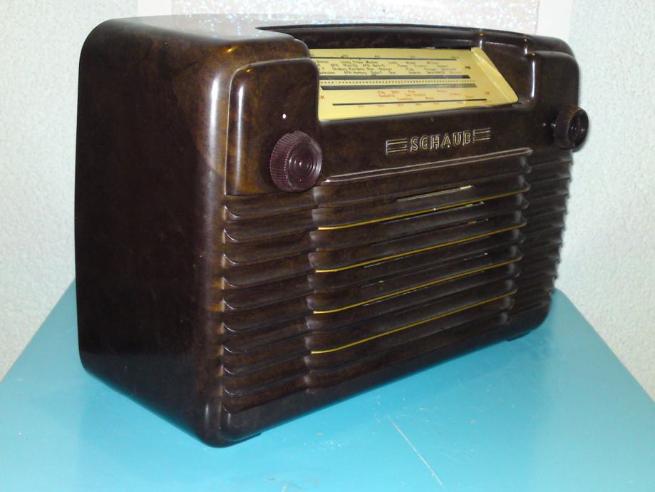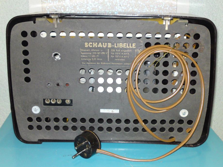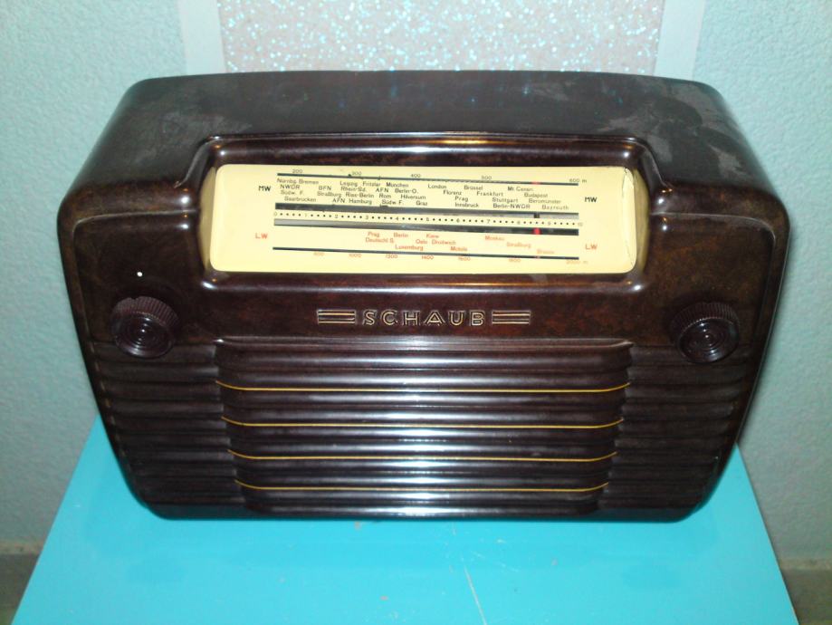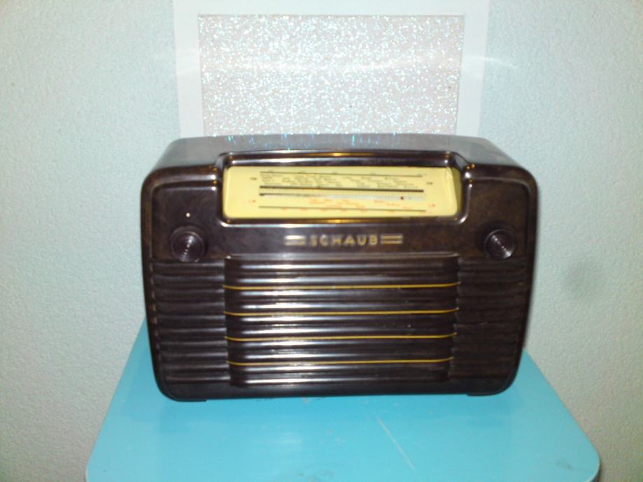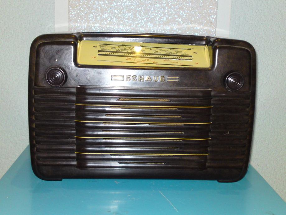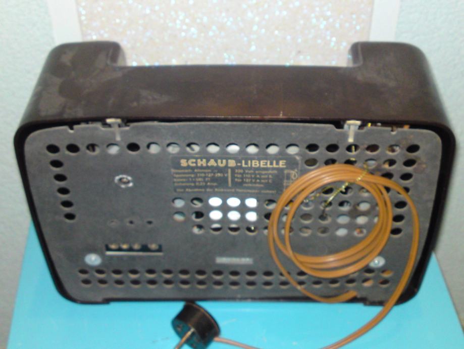 Radio uređaj proizvođaća Schaub; model libelle 54, kučište od bakelita, stolni model (ne i prijenosni); godina proizvodnje: 1952./53: snaga: .AC/DC-set / 110; 127; 220 Volta; Područje: LW, MW; Stanje: odlično, u funkciji, iz privatne kolekcije.