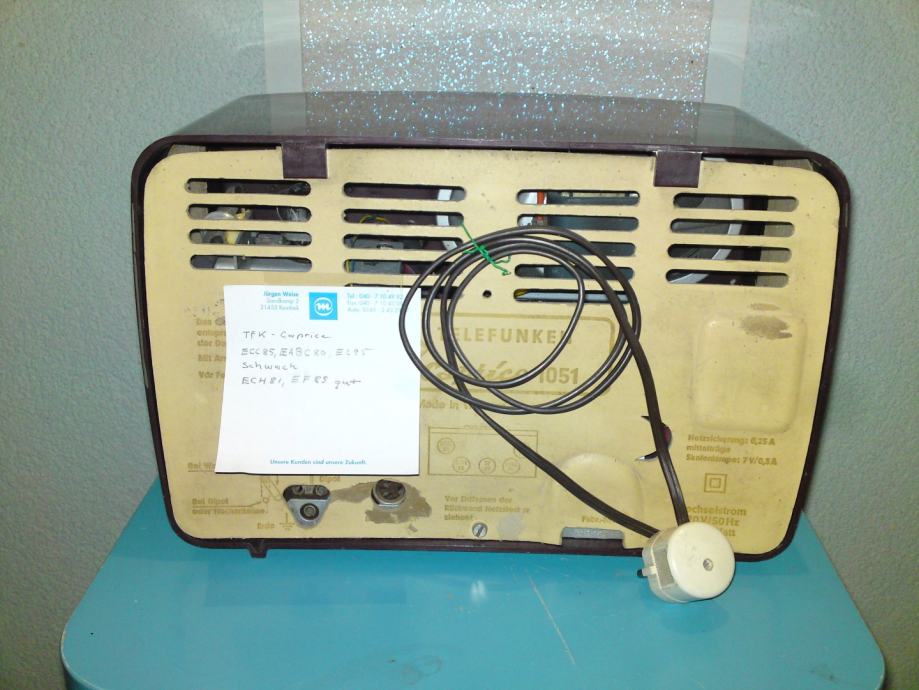 Radio proizvođaća telefunken, model. Caprice 1051; izrada:Telefunken Deutschland (TFK), (Gesellschaft für drahtlose Telegraphie Telefunken mbH); godina: 1959. - 1961.g.; valovi: Broadcast (BC) and FM or UHF; kučište: plastika (ne bakelit ili Catalin); stolni model sa dugmima za pomicanje; dimenzije: 330 x 220 x 180 mm / 13 x 8.7 x 7.1 inch; težina: 4,6 kg.