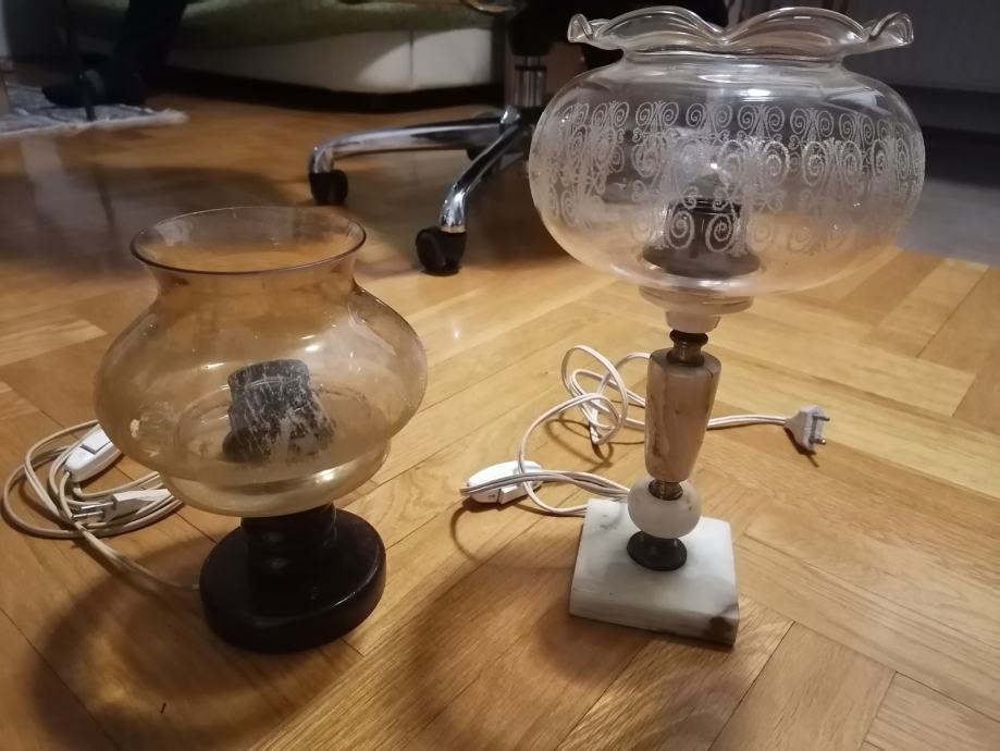 Prodajem stare raritetne stolne lampe sa izrezbarenim staklom. Jedna ima drveno, a druga keramičko postolje. Obje su funkcionalne bez oštećenja i daju lijepi ambijent.