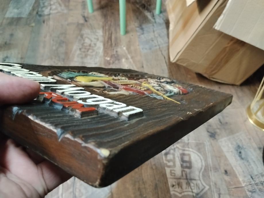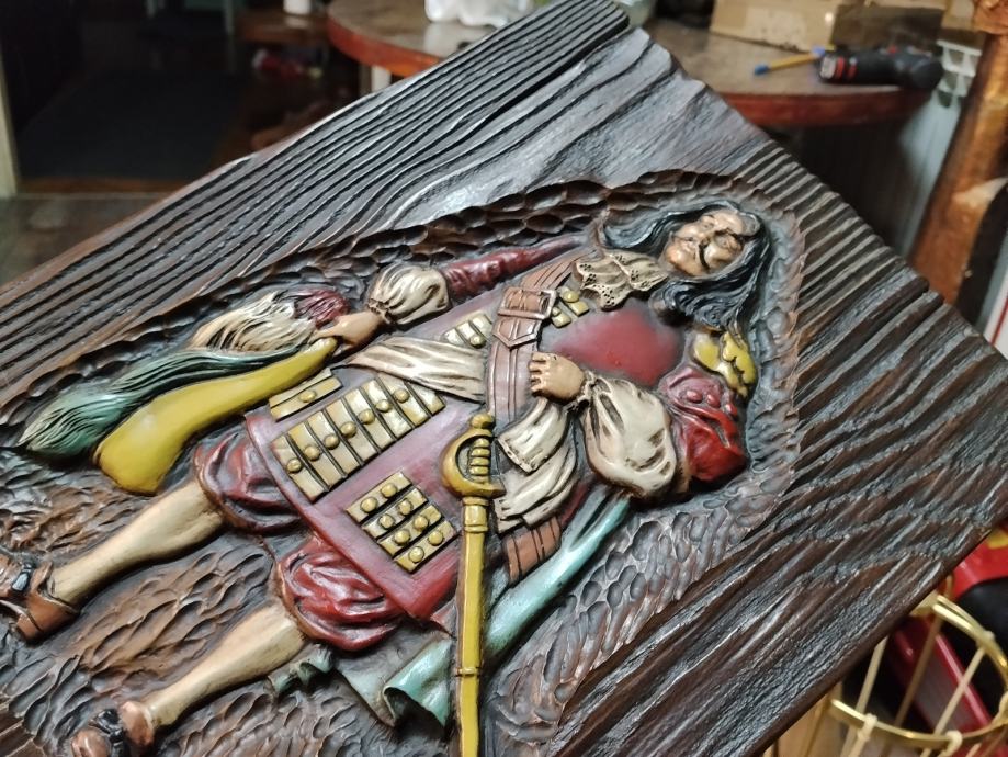 Izrađena od tvrde plastike sa izgledom rezbarenog drva .