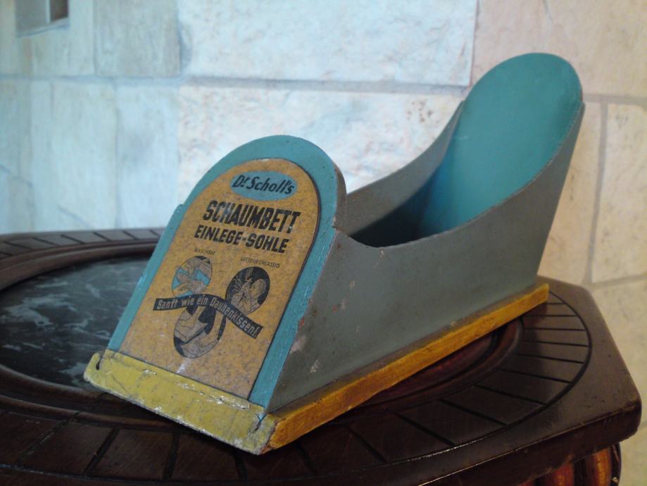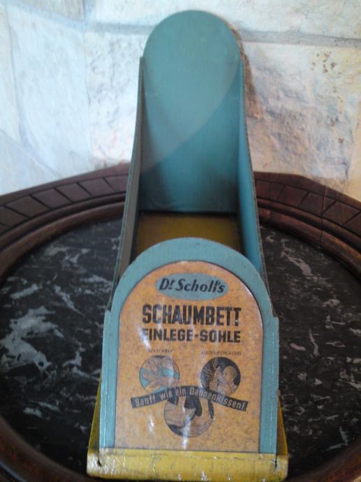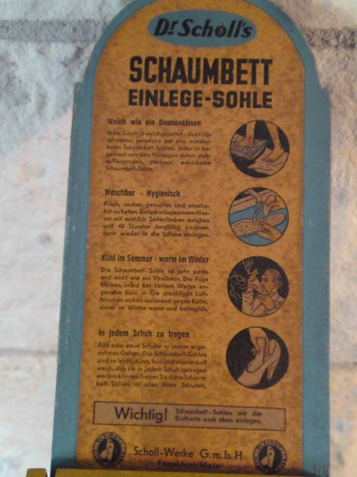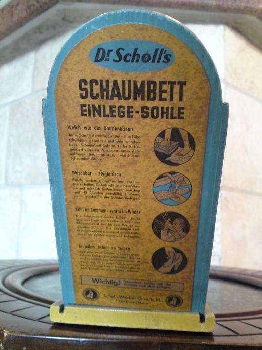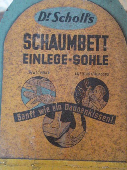 Stara reklamna kutija - Doktor Scholl - za uloške za obuću, u odličnom stanju; iz 1950. - i neke,.