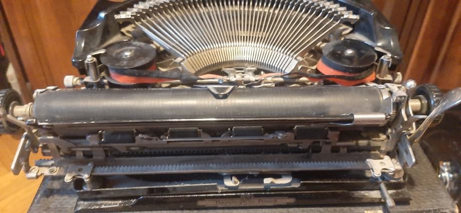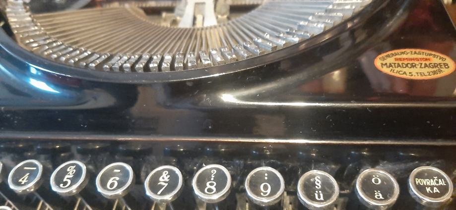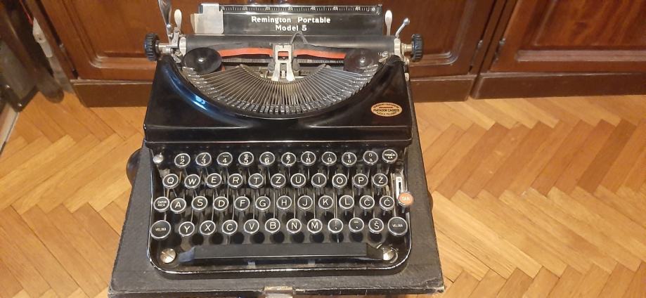 Prodajem originalnu američku, vrlo staru pisaću mašinu. Radi bez problema, vjerojatno bi trebalo mijenjati pisaću traku. Mašina je u original koferu.REMINGTON Model 5 bio je popularan iz više razloga, ali uglavnom zato što je bio jedan od rijetkih zaista laganih prijenosnih strojeva tog vremena. Pisaći strojevi bili su vrlo skupi predmeti, a ovaj je bio popularan u trgovinama pisaćih strojeva gdje ste mogli unajmiti stroj tjedno. Jedna iznimka bio je Hermes Baby koji je bio manji i lakši od Remington Model 5. Remington je uvijek imao svoj način rada. Ako sve ostalo ne uspije, pročitajte upute i priručnik možete besplatno preuzeti s interneta. Brava kolica je ista kao i poluga za razmak između redaka, a s polugom prema dolje otključava kolica, što vam također daje jednostruki razmak između redaka, za dvostruki redak okrećete nazubljeni gumb sa strane birača. Prvo što primijetite su vrlo male kaleme vrpce. Ako trebate zamijeniti vrpcu, morat ćete namotati novu vrpcu na originalne kaleme. Nema bale papira, već dvije klizne kopče koje drže papir na mjestu. Na nosaču se nalaze dvije vage za papir, a donja se lako vidi s indikatorom ispod držača vrpce, što je lijep detalj i tipično za Remington strojeve. Ako ne možete pronaći dugme za otpuštanje margine, to je srebrni gumb pored tipke broj dva. Najneobičnija značajka je tipka označena s 'start' na ranijim modelima i 'par' na kasnijim strojevima. Pritiskom na nju nosač se pomiče za pet mjesta, namijenjenih za nove odlomke, to će učiniti kada se pritisne u bilo kojem trenutku, a ne samo na početku lijeve margine. Ovo je najbliže tabulatoru koji ćete dobiti na ovom pisaćem stroju. Ostatak za papir lako je propustiti jer su to dvije poluge na stražnjoj strani stroja. Ne tražite automatski preokretač vrpce jer je to ručna stvar kojom se upravlja pomoću nazubljenih gumba s obje strane pisaćeg stroja. Uobičajeni birač vrpce za crnu, crvenu ili šablone. Ima ugodan lagan dodir i koristi Remingtonove patentirane zupčaste udarače za slova. Nikada to nisam vidio ni na jednom drugom stroju, radi dobro, ali kasniji strojevi poput Quiet Ritera (Remingtonov pravopis, ne moj) iz 1950-ih koriste uobičajeniji tip mehanizma. Osim toga, još uvijek su lijepi strojevi za tipkanje slijepo i mislim da proizvode i lijep zvuk!