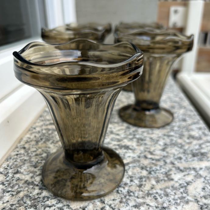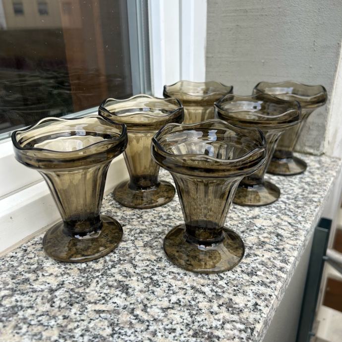 6 retro staklenih čaša za sladoled iz 70ih, nekorištene, iz vitrine.