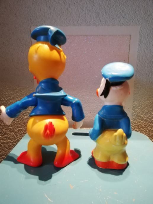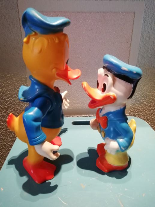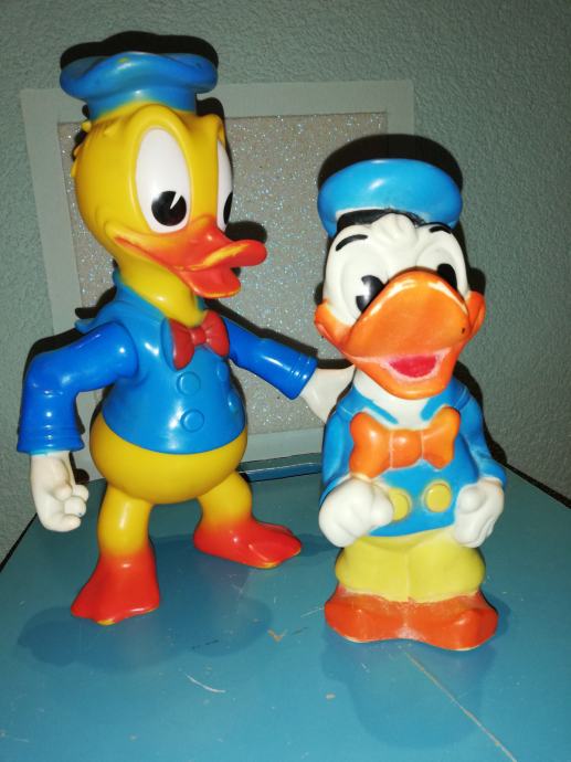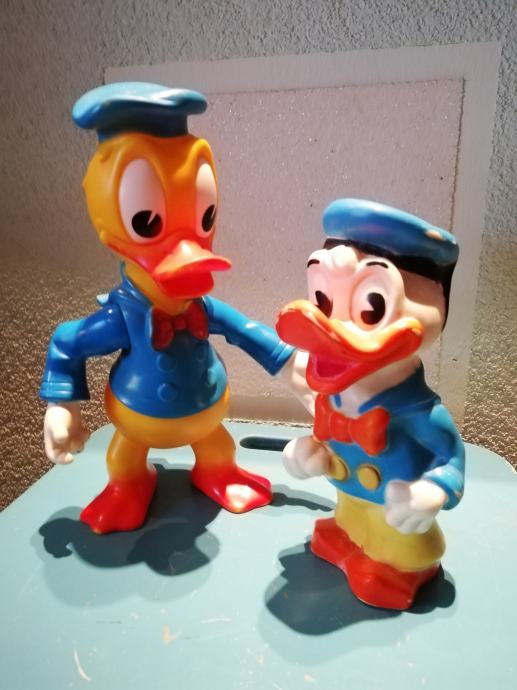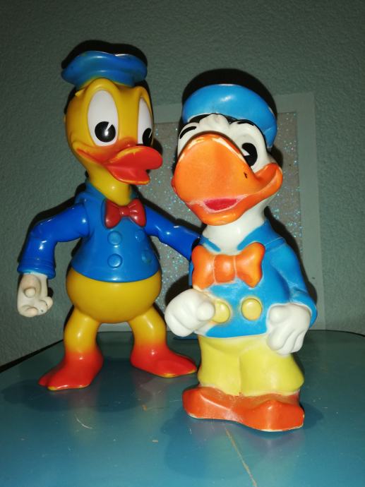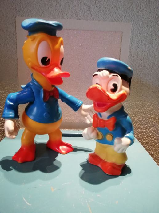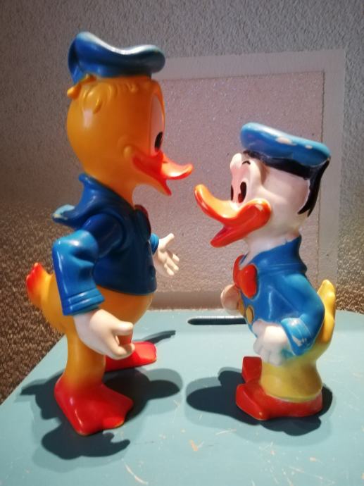 Stari retro lot gumenih igračaka Donald Ducka. Velika igračka je od polutvrde gume, a izrađena u Francuskoj Delacoste. To je jedna od najtraženijih igračaka među kolekcionarima W. Disneya. Druga je igračka od tvrde gume, izrađena u Disnijevojoj tvornici u Velikoj Britaniji. Oba primjerka su rijetka.iz privatne kolekcije.
