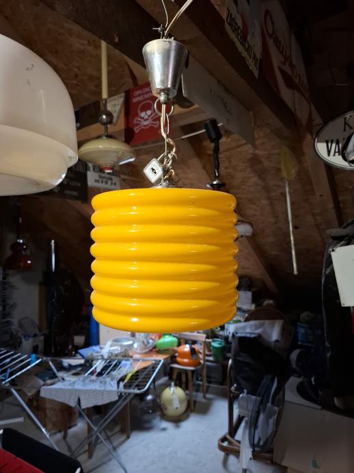 Stakleni retro luster u odličnom stanju.Visina cca 20 cm,promjer cca 22 cm