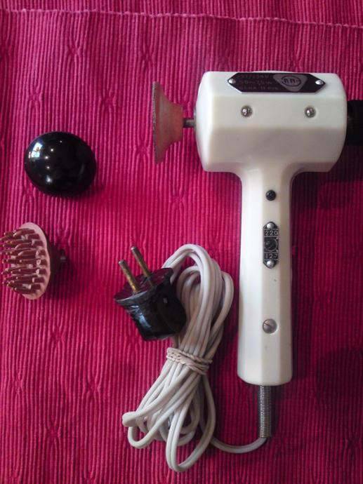 Stari električni masažer za tijelo, sovjetske proizvodnje, sa dodacima za masažu.